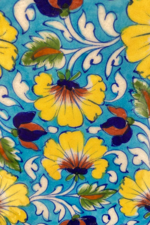 Blue Pottery Is A Traditional Craft Of Turko-Persian Region, It’S Seed Was Planted In Jaipur, Rajasthan (India), In The 19Th Century. Since Then Blue Pottery Has Bloomed And Flourished Exclusively In Jaipur. It Was Registered Under Geographical Indication Handicrafts In 2009 And Is Popularly Known As “Jaipur Blue Pottery”. Quartz Stone And Glass As It’S Main Ingredients, Blue Pottery Uses Low-Fired Glaze, Which Makes It Unique And Markedly Distinct From Other Forms Of Pottery. Each Item Of Blue Pottery Goes Through 42 Manual Processes Over A Period Of 20-25 Days Until The Finished Product Is Ready. Blue Pottery Is Known For It’S Lustre. Unlike Ceramics, It’S Sheen Last For A Minimum Of 800 Years!". Shilp Guru Gopal Saini Is A President Awarded Artist. With Untiring And Sustained Painstaking Efforts Of Whom, The Art Of Blue Pottery Has Gained New Momentum And Has Reached To Unfathomable Heights Of Excellence. Shri Saini Has Been Awarded Numerous Awards. To Name Few; Shilp Guru Award (2016)Ministry Of Textiles, Government Of India; National Award (2009) , Ministry Of Textiles, Government Of India.