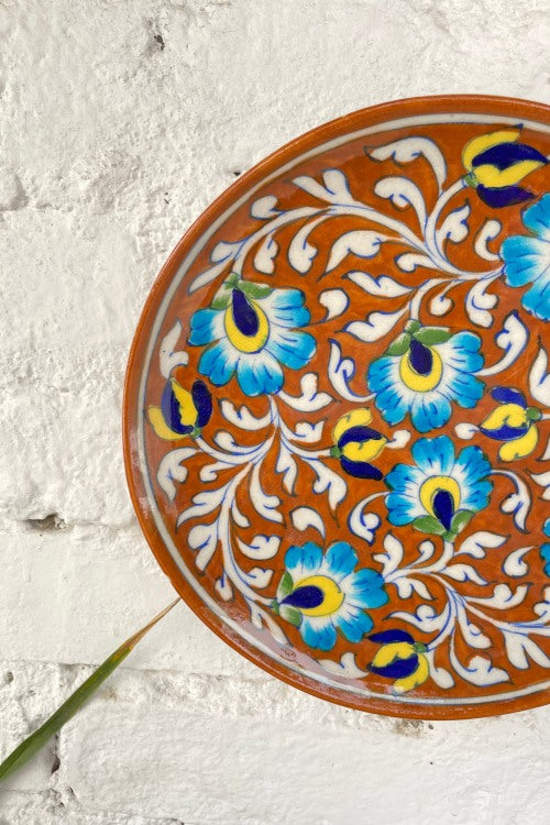 Blue Pottery Is A Traditional Craft Of Turko-Persian Region, It’S Seed Was Planted In Jaipur, Rajasthan (India), In The 19Th Century. Since Then Blue Pottery Has Bloomed And Flourished Exclusively In Jaipur. It Was Registered Under Geographical Indication Handicrafts In 2009 And Is Popularly Known As “Jaipur Blue Pottery”. Quartz Stone And Glass As It’S Main Ingredients, Blue Pottery Uses Low-Fired Glaze, Which Makes It Unique And Markedly Distinct From Other Forms Of Pottery. Each Item Of Blue Pottery Goes Through 42 Manual Processes Over A Period Of 20-25 Days Until The Finished Product Is Ready. Blue Pottery Is Known For It’S Lustre. Unlike Ceramics, It’S Sheen Last For A Minimum Of 800 Years!". Shilp Guru Gopal Saini Is A President Awarded Artist. With Untiring And Sustained Painstaking Efforts Of Whom, The Art Of Blue Pottery Has Gained New Momentum And Has Reached To Unfathomable Heights Of Excellence. Shri Saini Has Been Awarded Numerous Awards. To Name Few; Shilp Guru Award (2016)Ministry Of Textiles, Government Of India; National Award (2009) , Ministry Of Textiles, Government Of India.