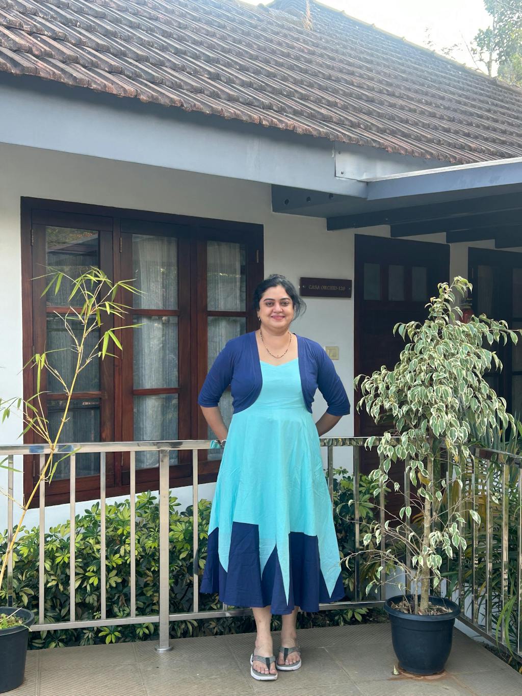 Beautiful fabric, lovely colour combination. The length is a little short than what is seen in the pic but the dress is awesome