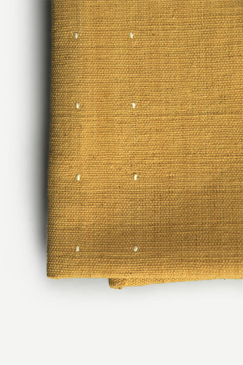 - These textiles are primarily used by the cattle-herding communities from arid regions of India. Initially, only the Dangasia community had inherited the knowledge and skills required for the Tangalia weave. Later various communities from Gujarat and Rajasthan such as Gurjara, Maheshwari’s and Marwadas picked up this craft, each adding their own twist to it. - Inspired by intricate patterns on woollen skirts of women from pastoral communities in Kutch, our weavers give the fabric a contemporary look that appeals to our global community. - The essence of Tangaliya weaving is the compositions created by colourful dots, which are simultaneously stitched on both sides of the fabric. - Tangalia weave is an extra weft weaving technique, very similar to embroidery, but more painstaking where the pattern is inlaid in the weft and warped by hand. - This intricate process of twisting the weft while weaving creates beautiful geometric patterns and forms, resulting in a bead-like inlay that bejewels the final fabric. Dimension : 40 X 40 X 0.3(cm)