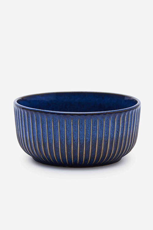 A handcrafted blue ceramic bowl for some contrast with pumpkin or mushroom soups. This ceramic bowl is just the kind of mood-lifter you need while slurping up hot soup on a sick day or at the end of a long day at work. Glazed in a beautiful blue, the handcrafted bowl has a decorative body and adds an instant pop of colour to the table too. This product is handcrafted in Uttar Pradesh. It is part of Ikai Asai’s Lila collection, and takes inspiration from Pondicherry and its gentle pace of life. This product is handcrafted and therefore slight variations in colours, textures and forms are inevitable and aren’t flaws. Stoneware is made from clay and fired at high temperatures in a kiln to harden. Characteristically, stoneware is less porous and more durable than earthenware. Much like other clay products, stoneware is also made by kneading the clay and then throwing it onto a pottery wheel. The shaped clay product then goes through the process of bisque firing, glaze application, drying, and glaze firing to make the final product. Pottery in the Indian subcontinent has a long history — it has existed as a craft form for centuries. Ikai Asai’s collection of stoneware is developed in collaboration with small-scale units and largely processed by hand — bringing together the best of industrial technology and craft.