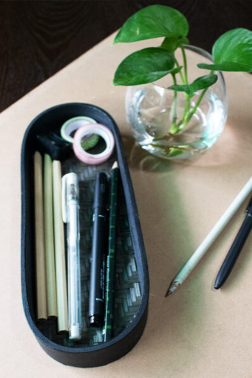 DIMENSIONS - 24.5 cm x 9 cm x 3.5 cm MATERIAL- Bamboo woven & Bamboo Ply dyed in Azo free dyes.