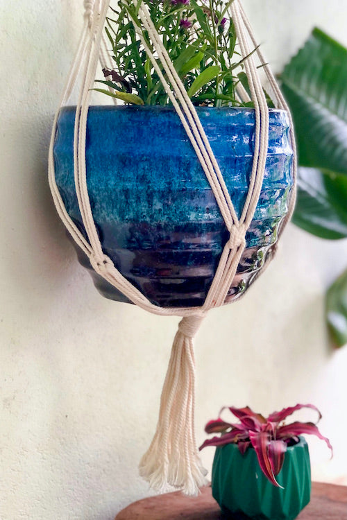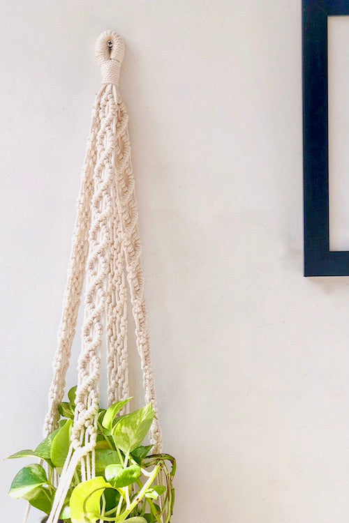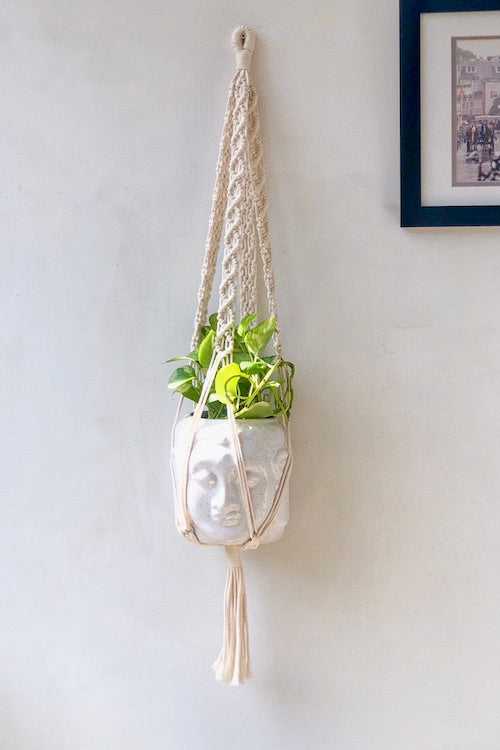 Delicate yet durable, our handcrafted macramé plant hanger is a perfect mate for all your plants. The product fits different sizes of pots and mingles effortlessly with your garden space. With our intricately knotted plant hangers, let your greens dangle!