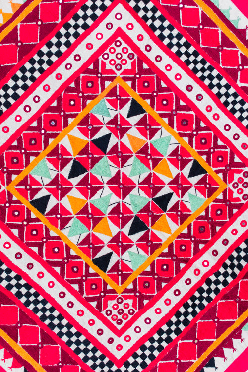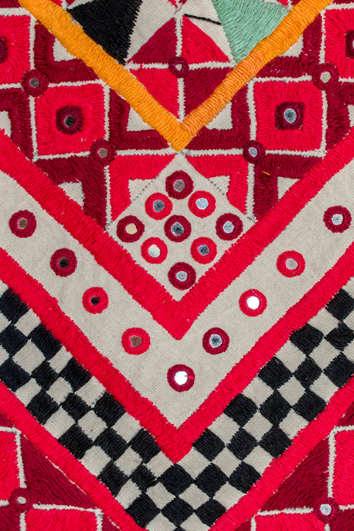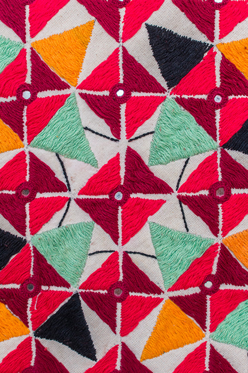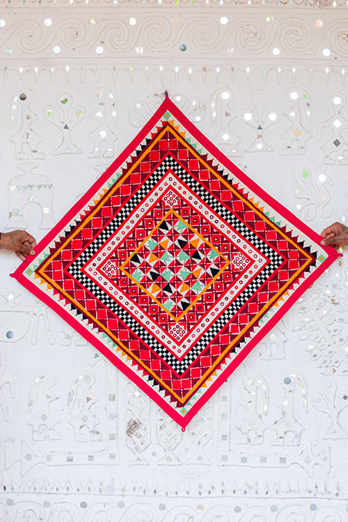 Our ‘AAINA’ wall piece is here to grace the walls of your elegant home. Handcrafted in pure cotton, it’s as bright as the morning sun in lovely colours. The dense hand embroidery that covers the entire surface deserves to be appreciated. Display this gorgeous piece in the perfect place, and watch the morning sunlight bounce off the mirrors and illuminate your room! Crafted with great love, by the women artisans of Okhamandal, Gujarat, this well-balanced work of art needs a place in your lovely home!