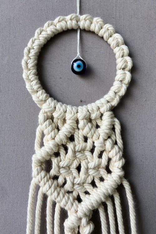 An evil eye to keep the bad vibes and "boori nazar" away in the form of a dream-catcher to catch your happiest dreams and help you manifest them into reality! This piece is an absolute "must-have" and is sure to catch the attention of everyone in the room or in the car.