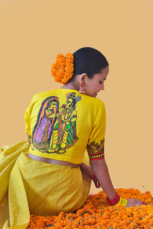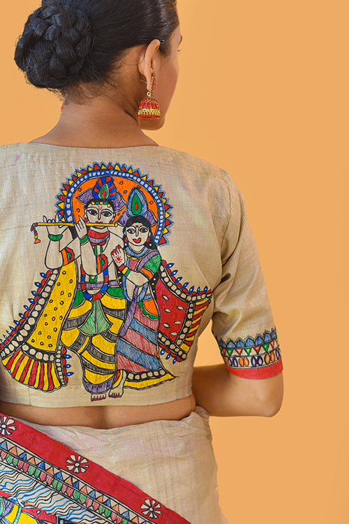 Madhubani Paints Handpainted Madhubani RADHA SANG KRISHNA Tussar Silk Blouse