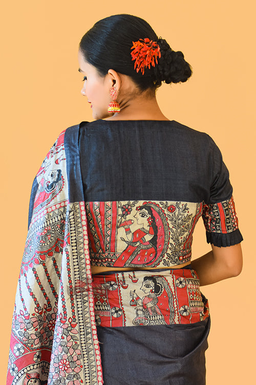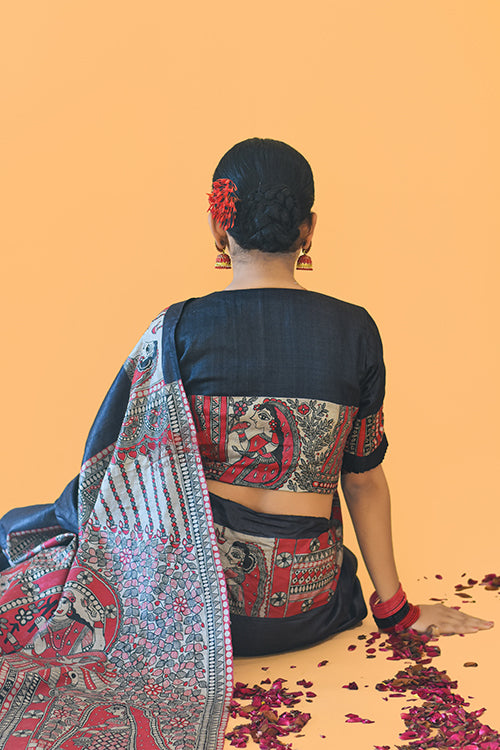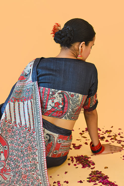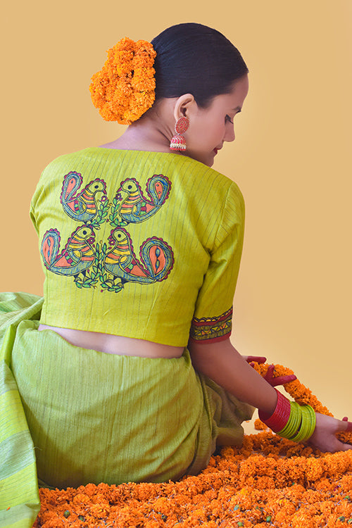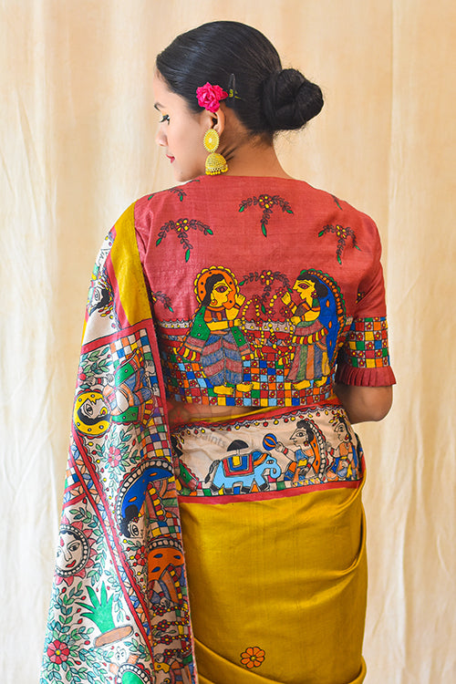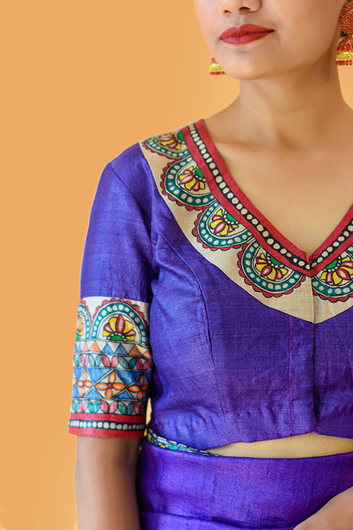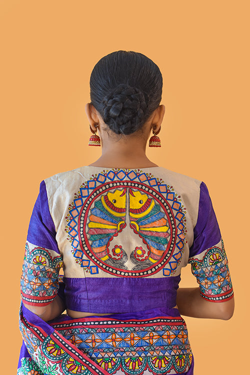 NARAYANI Handpainted Madhubani Tussar Silk Blouse Madhubani Paints