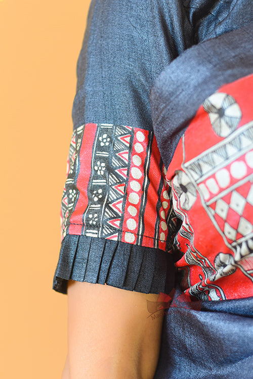 Madhubani Paints Handpainted Madhubani MATSYA UTSAV Tussar Silk Blouse
