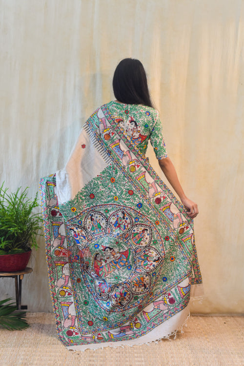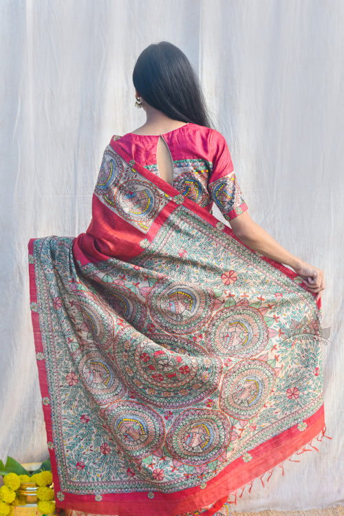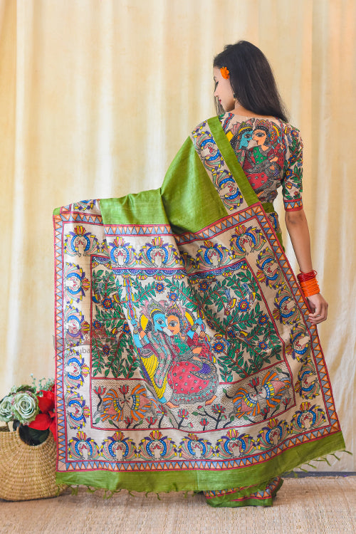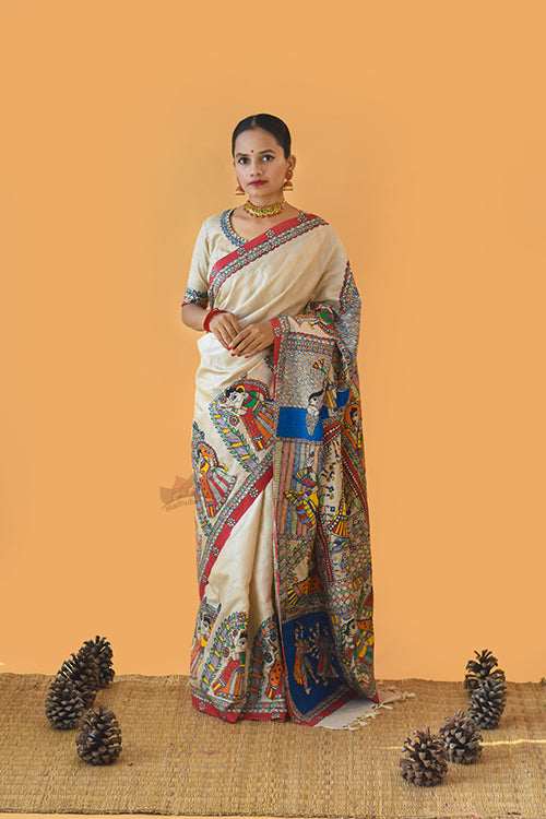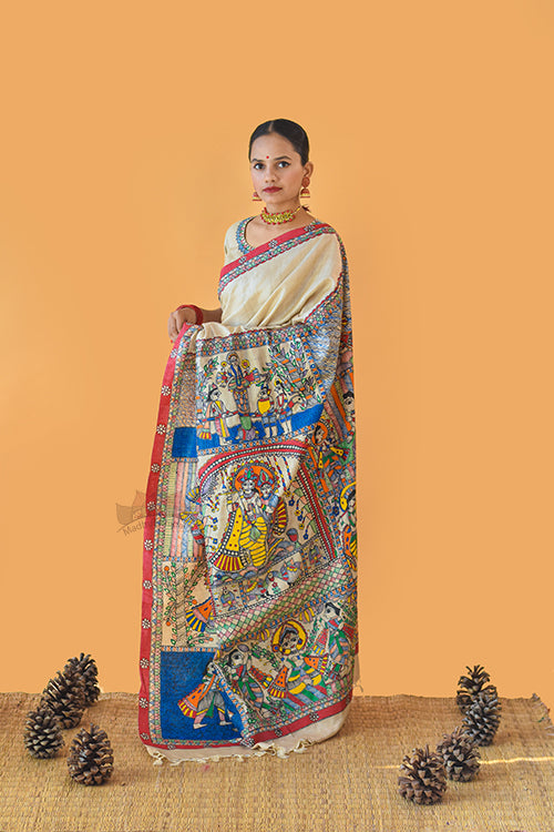 Madhubani Paints Handpainted Madhubani RADHA SANG KRISHNA Tussar Silk Saree