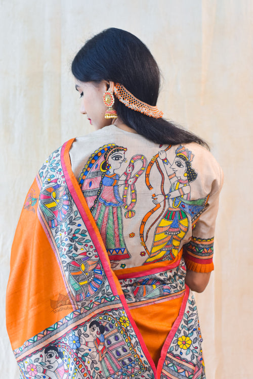 SITA RAM Handpainted Madhubani Tussar Silk Saree Madhubani Paints