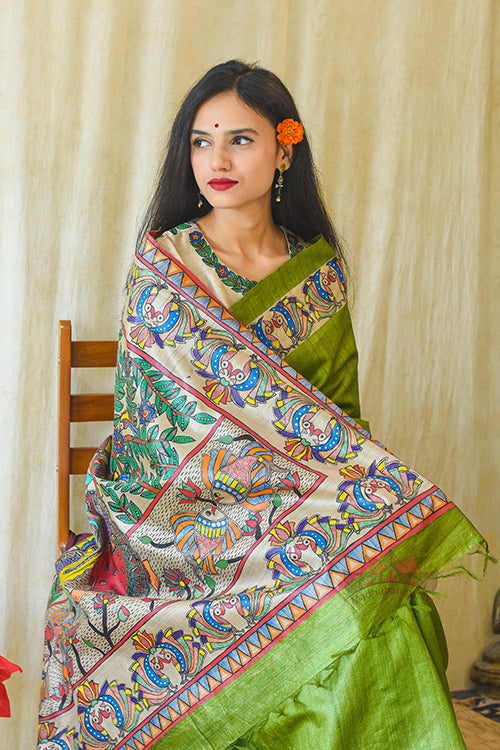 Madhubani Paints Handpainted Madhubani 'Manohara' Tussar Silk Saree