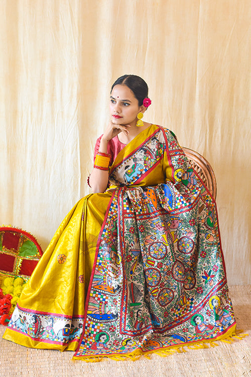 Madhubani Paints Saat Pheere Madhubani Handpainted Saree