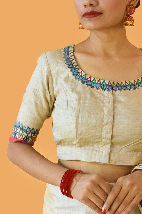 Madhubani Paints Handpainted Madhubani 'Manohara' Tussar Silk Blouse