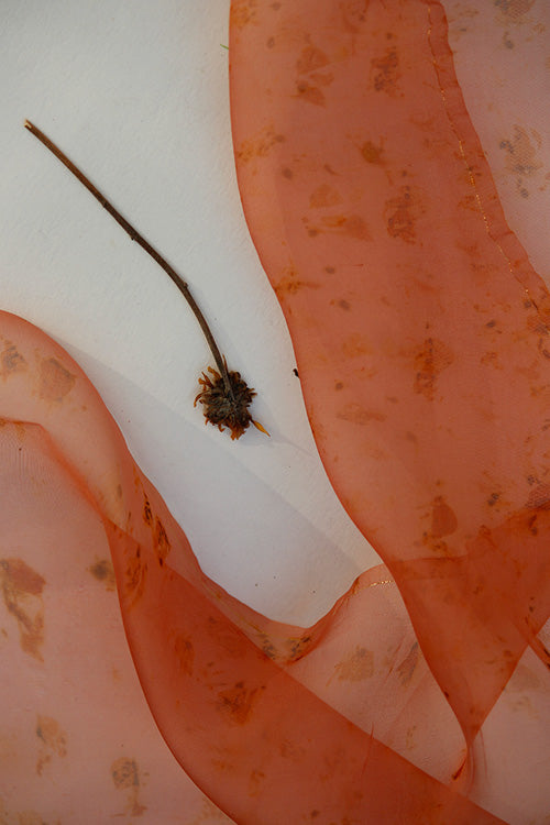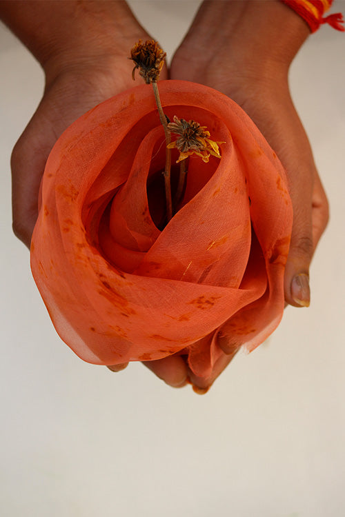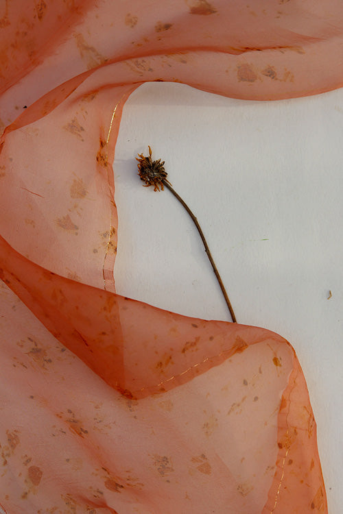 Add a touch of elegance to your wardrobe with our stunning Organza Silk collection. Delicately eco-printed using temple flowers, this 44-inch-wide fabric combines the beauty of nature with expert craftsmanship. Lightweight, sheer, and effortlessly graceful, Organza Silk is perfect for creating timeless outfits that work for any season. Each piece is handcrafted by skilled artisans from the Himalayan region, bringing sustainable luxury and heritage-inspired charm to your style.