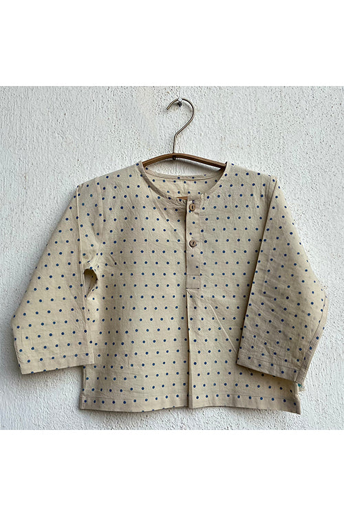 Designed and Made in India, our limited edition 100% organic cotton clothing is uniquely designed for gender-neutral gifting. Inspired by an original read-aloud poem, 'Zoo Treat'. Set contains: 1 x kurta top: 100% organic cotton, the indigo polka is hand-block printed by Ajrakh artisans in rural Gujarat. Wooden button closures and flat seams for ease of wearing and fit. 1 x pants: 100% organic cotton. Handblock printed using naturally hypoallergenic indigo colour. Elasticated waistband and bottom hem for easy pull and stay. Conscious of minimising waste, it comes packed in a reusable muslin bag with an interactive paper game tag, ready for gifting.