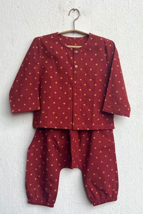Designed and Made in India, this limited edition product is inspired by an original read-aloud poem 'Zoo Treat' that speaks of the spontaneity of childhood and our cultural values. This gender-neutral gift set contains: 1 x kurta top: 100% organic cotton. Hand-block printed by traditional Ajrakh artisans in natural madder and haldi colours. Wooden buttons closures and flat seams for ease of wearing and fit. 1 x pants: 100% organic cotton matching pants with elasticated waistband and bottom hem. Conscious of minimising waste, it comes packed in a reusable muslin bag with an interactive paper game tag, ready for gifting.