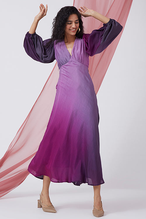 Get set ready for the upcoming festivals and weddings this year with the most stunning staples we have for you from our all-new Ombre Collection! Introducing 'Candlelight Dinner', a purple ombre dress, that is all set to take away your weekday blues with its divine hues. With a uniquely crafted deep V-neckline, the dress comes with gathers around the shoulders and an elasticated sleeve to give that edgy look. Comfort is of utmost priority for us and so we've provided pockets on the side & conceled zipper on one side of the dress. We recommend you pair this stunning ensemble with silver jewellery and you'll be ready to make a fashion statement this year!