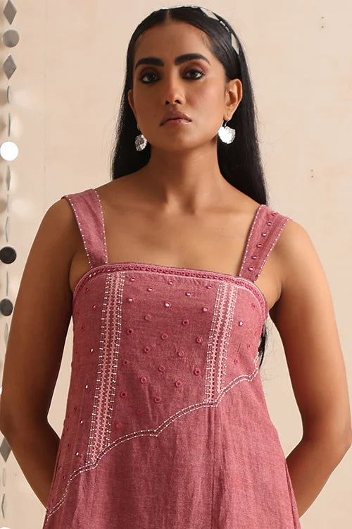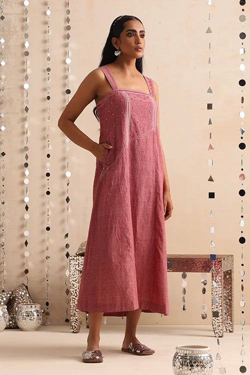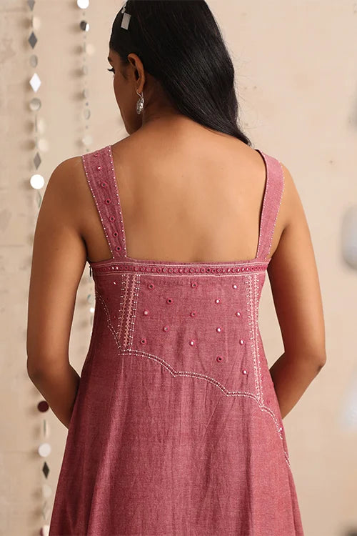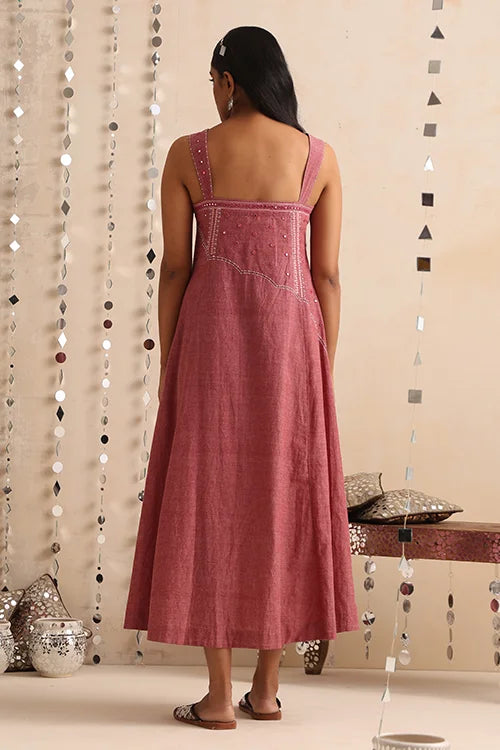 Our Sitaara dress is designed with a concealed side zipper for a seamless finish. This dress celebrates fine craftsmanship through intricate embroidery on the front and back, using chain, bavadiyo, and running stitches. Round mirrors and delicate white beads add a subtle shimmer, while the left shoulder strap is uniquely detailed with mirrors placed at intervals, creating a graceful asymmetry. Inspired by Jaipur’s forts and mahals, it's a perfect long dress for the festive season, pre-wedding functions, cultural gatherings, and evening soirees.