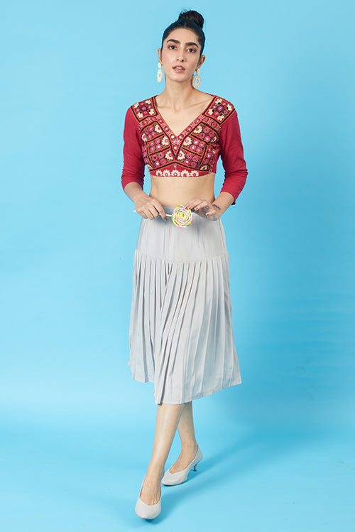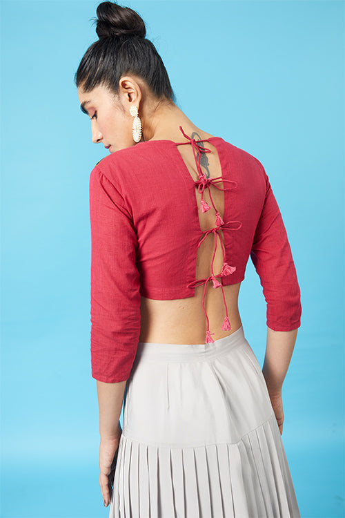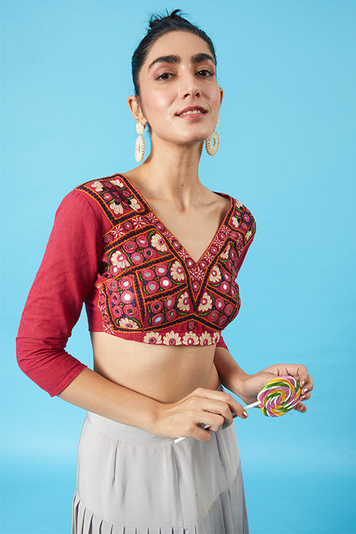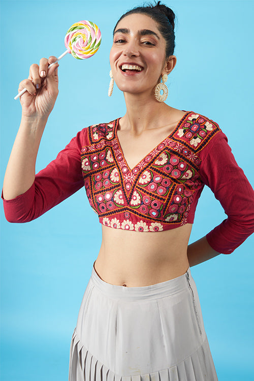 Cannot find the perfect blouse to pair with your lehenga? We’ve got you covered with our loveliest piece yet - it will absolutely make you want twirl like a ‘Princess’. Presenting ‘Princess’, an exquisite piece of wearable art to add to your wardrobe. Crafted on a rani pink pure cotton fabric, it’s a stunning combination of comfort and style. This 3/4th sleeve blouse is delicately decorated with vibrant embroidery known as the kutch embroidery all over the front. The embroidery includes chain, stem, satin, running stitch and shimmering mirrors to create a glamours look. What’s more is that the back comes with four strings that can be tied and further adorned with thread tassels at the end. To provide you with supreme comfort, this piece has been added with a self fabric lining underneath the front and back yoke to avoid irritation to your skin. You can style it in so many ways with different accessories and bottoms - the styles are endless. To create a contrasting summery look for a tradition, we would recommend you pair our ‘Princess’ blouse with our ‘Sultana’ skirt. Whatever you choose to pair it with, make sure you enjoy being a princess!