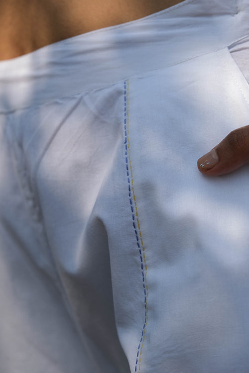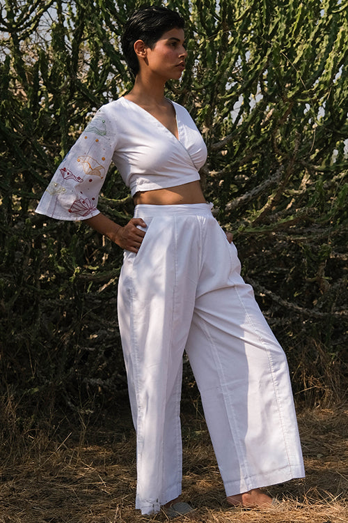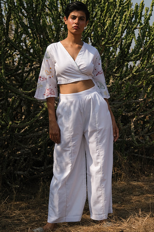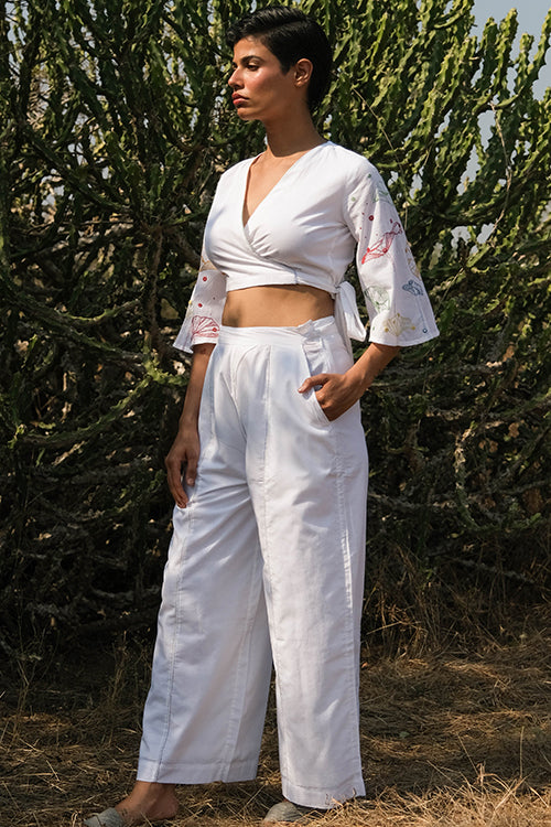 "Just like there's no end to the white sky, there's no end in how many ways you style our classic yet innovative 'White Sky' pants! 'White Sky' is the new and improved classic pair of pants that is perfect for the modern woman. Featuring a wide leg, concealed zipper and mop buttons on both sides to give it a contemporary look. This pair of pants will be your wardrobe staple for all your outings. That's not all, it also comes with two spacious pockets for your essentials. All in all, it offers casual appeal that is perfect for everyday wear.