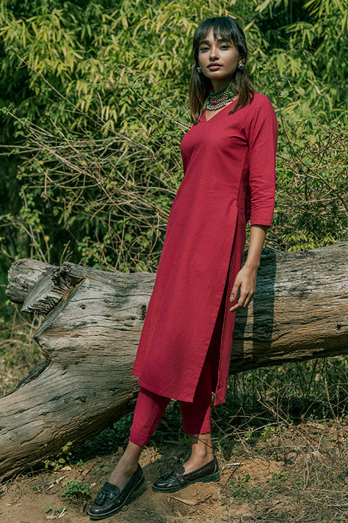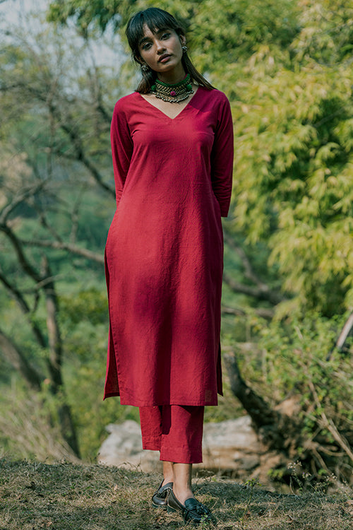 "Who doesn't like a plain solid kurta pant set that can be styled in 'Endless' ways when you don't know what to wear? Our Valentine's collection brings to you the ultimate essential of the season - Endless, a monochromatic kurta pant set that will make all your sorrows go away. With neck and third quarter sleeves, the kurta is supremely comfortable and gives an excellent fit. The straight fit pants come with two spacious pockets for you to bagless and enjoy being empty-handed. Put these two together and you’re bound to get magic. Or you can mix and match the two with contrasted kurta and pants to create new looks!