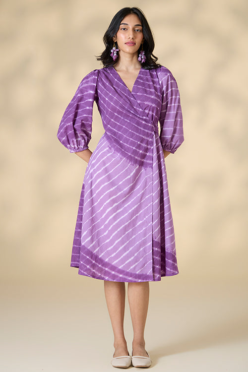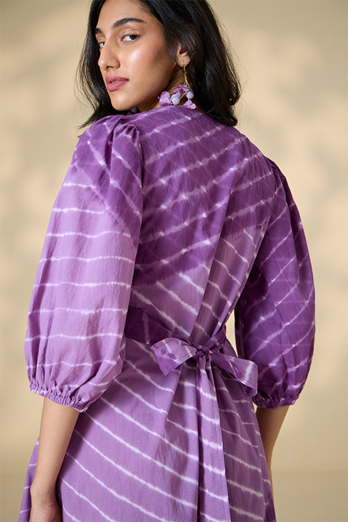Okhai "Hawaiian Dreams" Tie-and-Dye Pure Cotton Purple Wrap dress