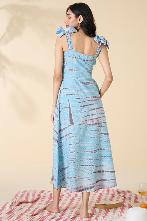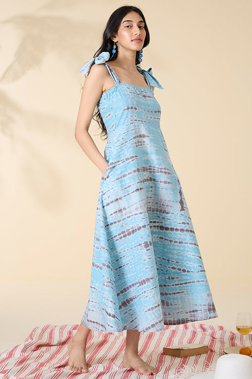 Our exquisite "Laguna lines" Dress, a pure cotton masterpiece handcrafted by our skilled artisans using traditional tie-and-dye techniques. This stunning sky blue dress features a sleeveless, strappy design with delicate elastication at the upper bust for a comfortable, flattering fit. A discreet side zipper ensures ease of wear, while the addition of two convenient side pockets adds a practical touch. Perfect for embracing the warm days of summer, the "Laguna lines" dress combines effortless style with exceptional craftsmanship. Embrace the timeless elegance and casual charm of this beautiful piece, designed to keep you cool and stylish all season long
