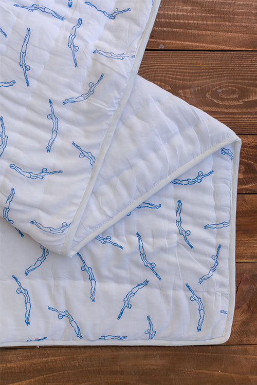 New in our Home Decor collection, we’re happy to be launching some lovely quilts. Our ‘Cool Dive’ quilt is a great choice for the early winter. The tiny humans hand-printed on the top layer will make you want to jump into bed and curl up with a good book. Made from pure cotton fabric, this quilt is soft and comfortable. It has been stuffed with cotton blend filler to provide thickness and warmth. It’s not really a quilt if it doesn’t keep you warm, is it?