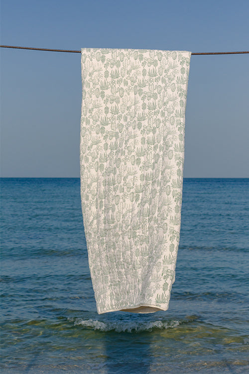 "Latest in our Home Decor collection is the ‘Desert Rose’ quilt. This piece will remind you of hotter days when you’re curled up on a cold winter evening. The comical cactuses are hand-block printed on the top layer and the quilt overall is made using pure cotton fabric. To provide thickness and warmth, the quilt is stuffed with cotton blend filler. Pick the perfect quilt for your new home or the freshly renovated bedroom!"