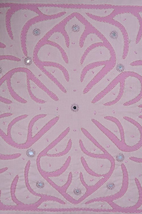 Add a touch of sophistication to any living room with our 'Frosted' cushion cover. The addition of intricate design and applique work will attract your guests and add to its luxury feel. The applique work on the cover makes it more sturdy and durable. Strong stitching and bold mirror effect reflect all the glory and attention towards you, making you shine brighter than ever. The herbal dyed pink hues will make your room soothing and classy. A great gift to yourself or a loved one!