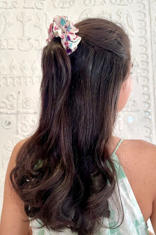 "Holding the hair tightly and being gentle on the hair strands, scrunchies are a must-have accessory that's making a comeback this season. It can be used to complete your daily casual look or for parties, whether it be a high ponytail or classic bun. Handcrafted from fabric waste, each scrunchie has its unique print. These vibrant scrunchies are the perfect way to jazz up your hairstyle. The soft and lightweight material won't tug your hair or make you feel uncomfortable while wearing it.
