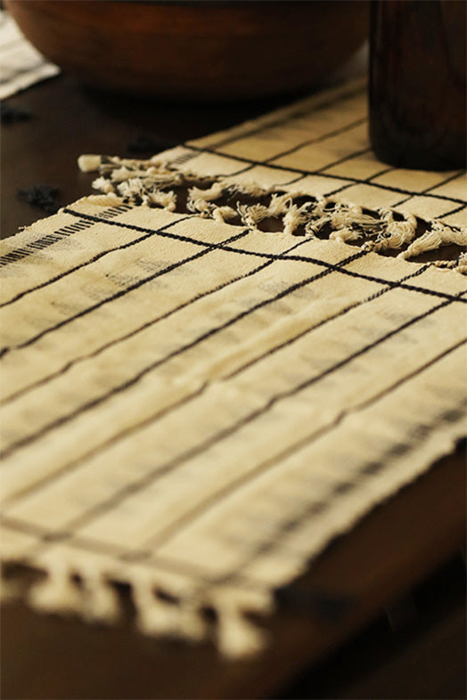 Adorn your table with a gift, patiently handcrafted by the weavers of Nagaland. Made from pure cotton, the dance of black and off-white colours adds a touch of rustic simplicity to your space. Maximalist? Or a minimalist? Or confused? Doesn't really matter, for this table cover will fit right in with your other knick-knacks. Celebrate your home by introducing this perfect table cover for all your moods!