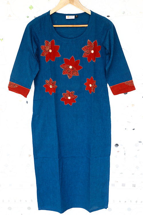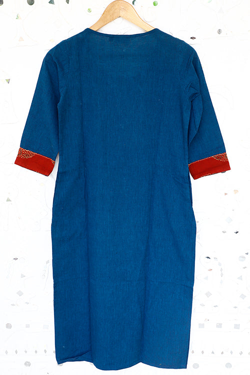 This garment is a final sample and for size and fit please refer size chart. Go through the wash care below carefully. Returns and exchanges are not possible on sample sale. Fabric Type: Cotton Wash Care: We use natural dyes in some of our products, since dark colours tend to run dry cleaning is recommended. The first few times wash in cold tap water, wash inside out and dry in shade. Use mild detergents only.
