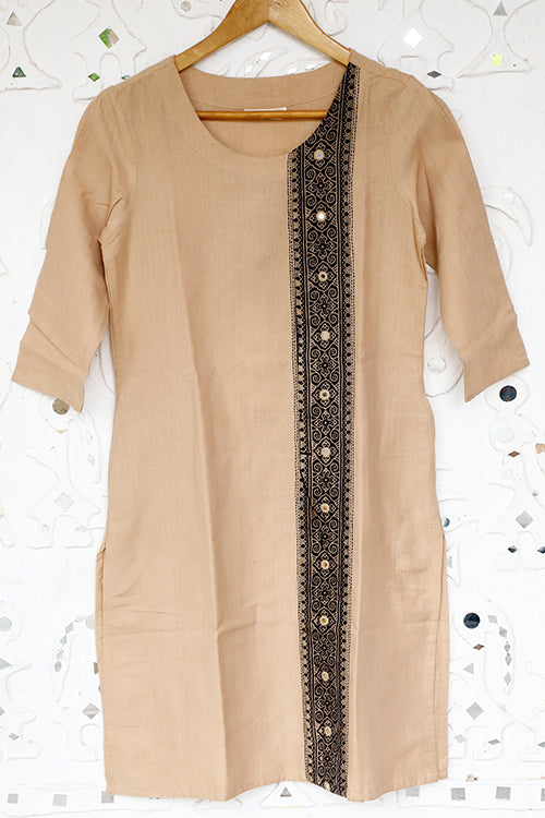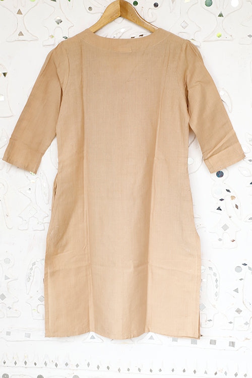 This garment is a final sample and for size and fit please refer size chart. Go through the wash care below carefully. Returns and exchanges are not possible on sample sale. Fabric Type: Cotton Wash Care: We use natural dyes in some of our products, since dark colours tend to run dry cleaning is recommended. The first few times wash in cold tap water, wash inside out and dry in shade. Use mild detergents only.