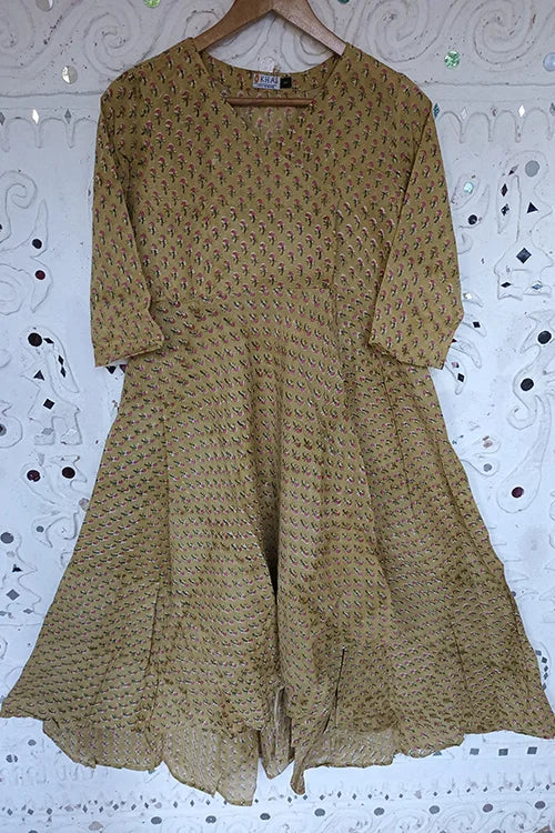 This garment is a final sample and for size and fit please refer size chart. Go through the wash care below carefully. Returns and exchanges are not possible on sample sale. Fabric Type: Hand Block Printed Cotton Wash Care: We use natural dyes in some of our products, since dark colours tend to run dry cleaning is recommended. The first few times wash in cold tap water, wash inside out and dry in shade. Use mild detergents only.