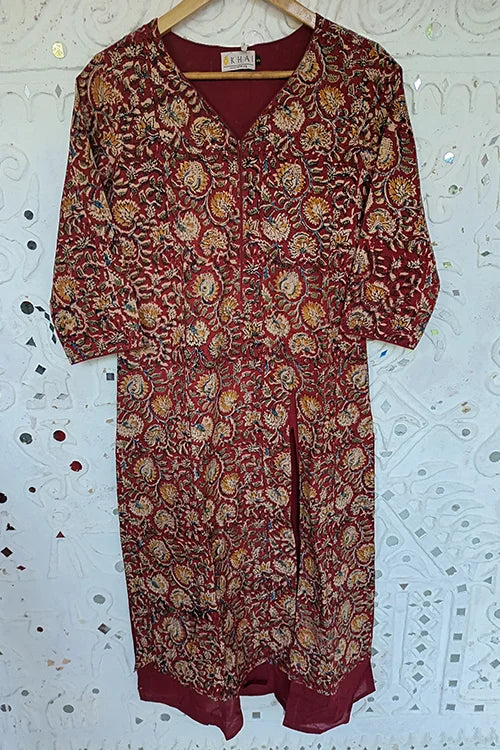 This garment is a final sample and for size and fit please refer size chart. Go through the wash care below carefully. Returns and exchanges are not possible on sample sale. Fabric Type: Hand Block Printed Cotton Wash Care: We use natural dyes in some of our products, since dark colours tend to run dry cleaning is recommended. The first few times wash in cold tap water, wash inside out and dry in shade. Use mild detergents only.