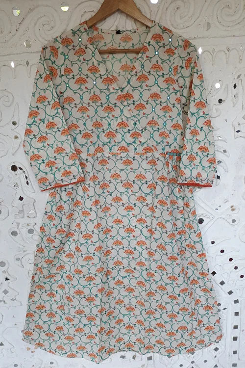 This garment is a final sample and for size and fit please refer size chart. Go through the wash care below carefully. Returns and exchanges are not possible on sample sale. Fabric Type: Hand Block Printed Cotton Wash Care: We use natural dyes in some of our products, since dark colours tend to run dry cleaning is recommended. The first few times wash in cold tap water, wash inside out and dry in shade. Use mild detergents only.