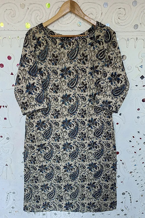 This garment is a final sample and for size and fit please refer size chart. Go through the wash care below carefully. Returns and exchanges are not possible on sample sale. Fabric Type: Hand Block Printed Cotton Wash Care: We use natural dyes in some of our products, since dark colours tend to run dry cleaning is recommended. The first few times wash in cold tap water, wash inside out and dry in shade. Use mild detergents only.