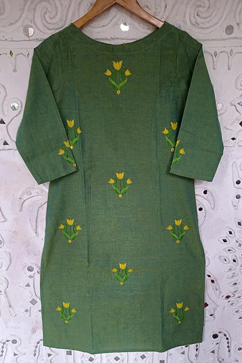 This garment is a final sample and for size and fit please refer size chart. Go through the wash care below carefully. Returns and exchanges are not possible on sample sale. Fabric Type: Cotton Wash Care: We use natural dyes in some of our products, since dark colours tend to run dry cleaning is recommended. The first few times wash in cold tap water, wash inside out and dry in shade. Use mild detergents only.
