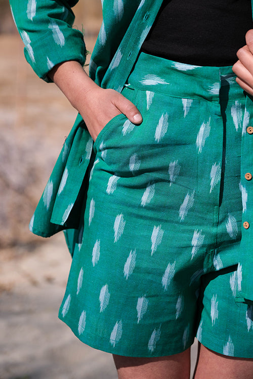 This garment is a final sample and for size and fit please refer size chart. Go through the wash care below carefully. Returns and exchanges are not possible on sample sale. Fabric Type: Cotton Ikkat Wash Care: We use natural dyes in some of our products, since dark colours tend to run dry cleaning is recommended. The first few times wash in cold tap water, wash inside out and dry in shade. Use mild detergents only.