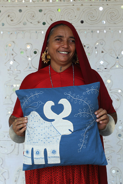 Nature stores countless stories to narrate to us and a million teachings to teach us through its many stances. Depicting one such tale of nature is the thoughtful and pleasing applique and petite hand embroidery work on our Synchrony cotton cushion cover. Our organic cotton cover sized 16 inches x 16 inches shows the profound, effortless co-existence or synchrony of various beings and aspects of nature. Our artisans have hand-embroidered affable leaves and fauna. Use this lovely cushion cover to dress up bedcovers in sold colors of white, black or pink; and watch this cushion cover bring quite an edgy element to your whole bedroom look.
