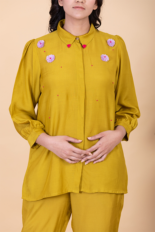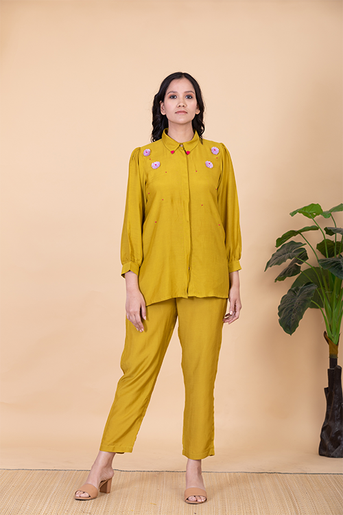 Craft - Contrast Delicate Flower Applique Embroidery With Resham Thread Knots
