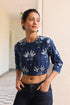 Immerse yourself in floral bliss as you put on our graceful "Azalea" crop top. The front and back neckline as well as the edge of the sleeves have been patiently embellished with delicate buttonhole stitches to elevate the overall elegance. Crafted from hand-block printed pure cotton fabric, it comes with lining in the front and back yoke part (excluding the sleeves) to ensure opacity as you go about your day calm and relaxed. Tying all the simple elements together, there are two Mother of Pearl buttons at the back for your ease and closure. And now, you don't have to keep tugging at your shirt to re-adjust it, for the bottom hem of the top comes elasticated. Don't wait anymore and make wonderful summer memories wearing "Azalea"!