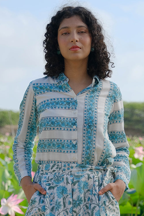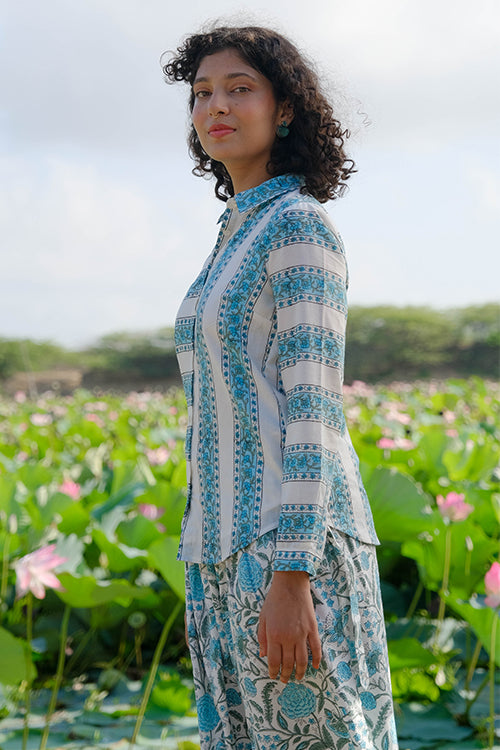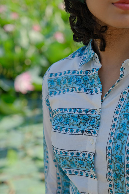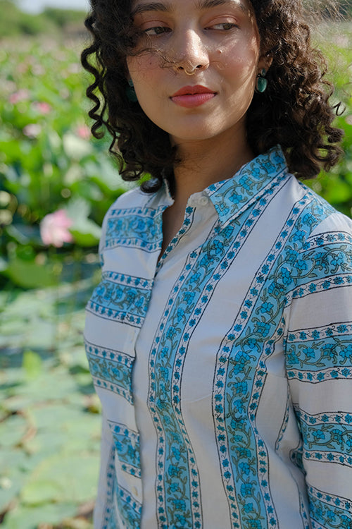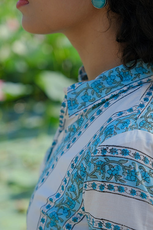 Okhai "Blossom Ballad" Handblock Printed Pure Cotton Shirt