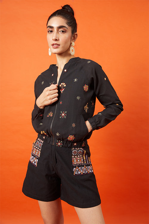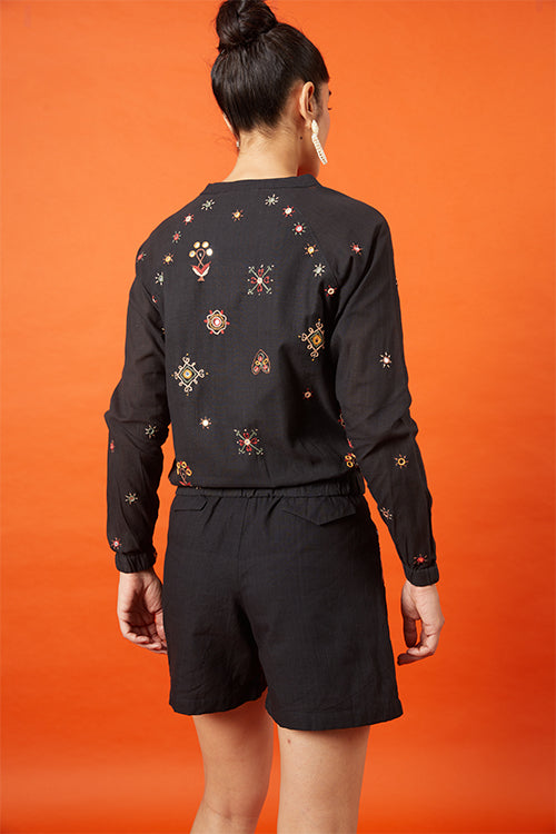 "The festive season means it's time to bring out your most OTT outfits to the table, and so we are here to help you with that by introducing our lovely 'Arya' shorts. A beautiful amalgamation of the softness of mul fabric and glistening embroidery of kutch work, this piece of garment is straight out of a painting of the royals. The shorts is heavily adorned with vibrant threads and mirrors on the front two pockets that add a pop of colour to the garment. This is going to be the most versatile and regal piece of garment in your closet for your mix and match however and whichever way you like, you will definitely make a statement everytime you wear it. Note- The garment may shrink after washing due to its fabric. We recommend you dry clean this ensemble.