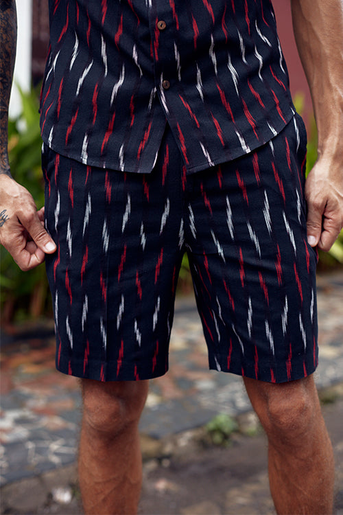 Take on the sweltering heat with style in our new shorts. Made with pure cotton Ikat, ‘Belief’ is everybody’s favourite. This piece comes with two pockets on the side and two on the back. It has loops for a belt, a sturdy concealed zipper, and a wooden button on the waistband to fasten. Make this your choice paired with a newly launched shirt from Okhai for a sundowner with friends.