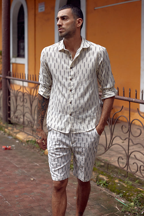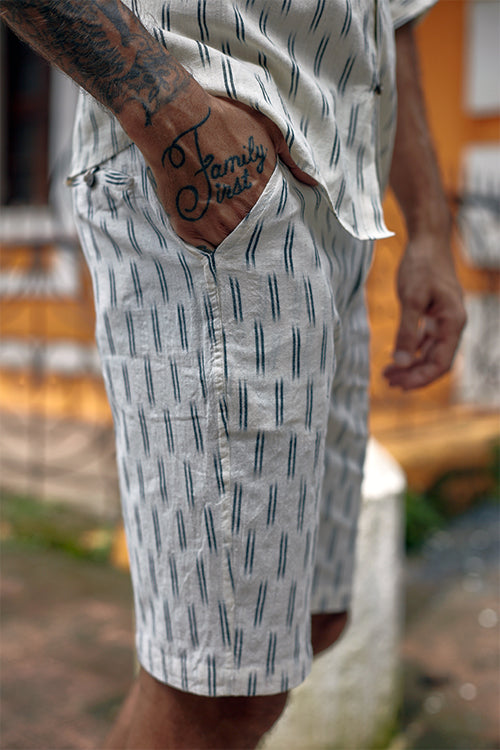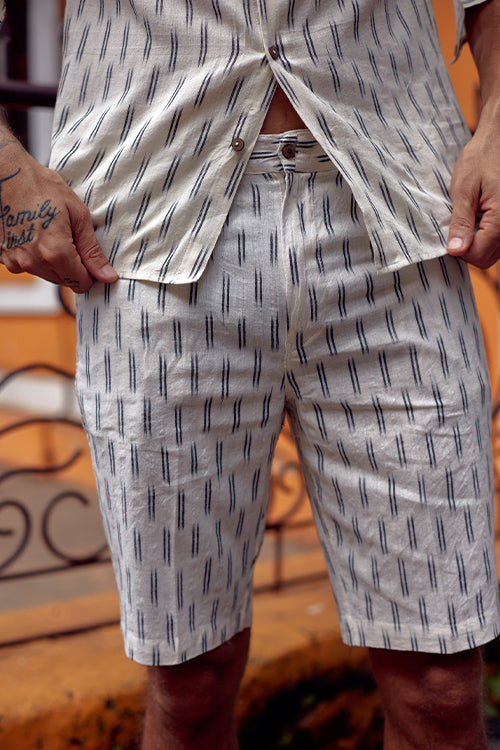 Summertime or not, shorts are an absolute essential! Our ‘Genuine’ is here to the rescue! Crafted from pure cotton Ikat fabric, this crispy cream number will transport you to the beachside. You get two pockets on the side and two on the back. With loops for a belt, a concealed zipper, and a wooden button on the waistband to fasten, this will undoubtedly give you the perfect fit. We can’t stress enough what a wardrobe essential this piece is!