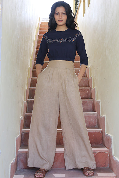 Hair up, statement gold earrings and mirrored shades. Our elegant 'Northern Sky' is truely a piece of art, perfect a special event, day or evening out. The buttery soft pure cotton fabric will hug your body like nothing else does, the stunning hand embroidery & mirror work is one reason to buy this dress amidst many other design features it has with it. The elasticated waist assures to accentuate the outfit. A concealed button at the back to ensure comfort & for a better fit. The 'Northern Sky' blouse is one thing you had been missing out on!