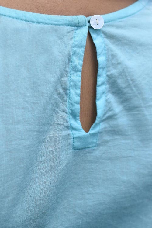 The Nargis angrakha kurta in blue, is a blend of elegance and comfort. Made from lightweight cotton with crewel hand embroidery from Kashmir, the kurta offers breathability and ease of wear. With drawstring details on the sides and 3-quarter length sleeves, it's both stylish and versatile. Adorned with elaborate embroidered motifs around the hem and delicate detailing on the neckline, makes the kurta a perfect for any occassion and celebration thsi summer. All the embroidery is handcrafted by artisans in Noorbagh, Kashmir.