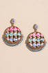 Whe Handcrafted Multicolor Tie And Dye Repurposed Wood And Fabric Dangler Earrings